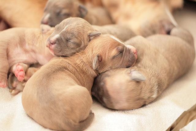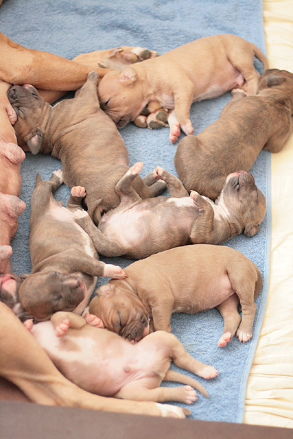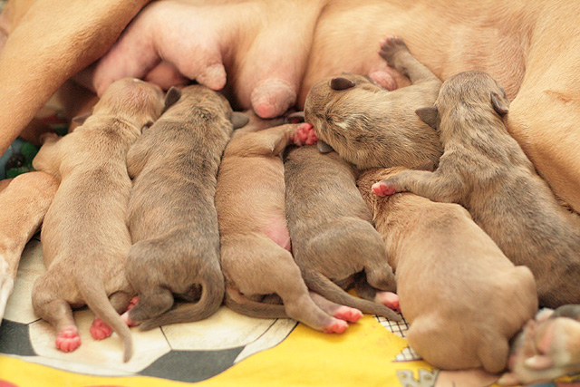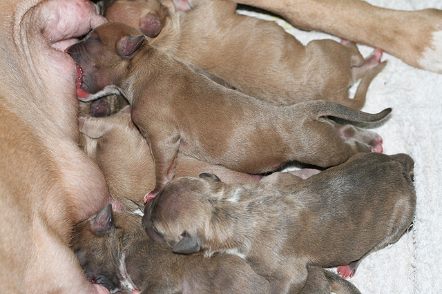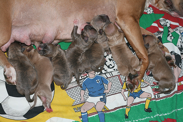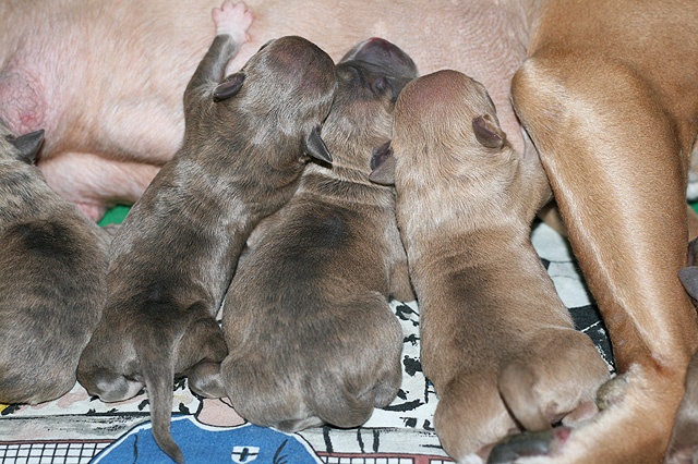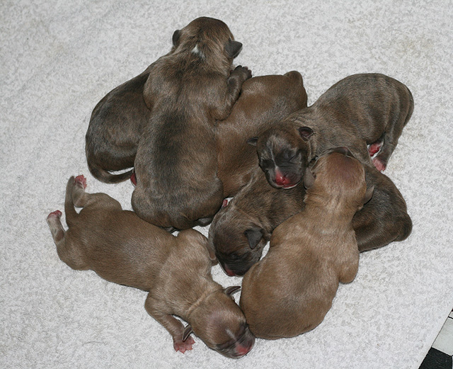 3 urosta / 3 boys (2 x bluefawn, 1 x bluebrindle), 4 narttua / 4 girls (1 x bluefawn, 3 x bluebrindle)